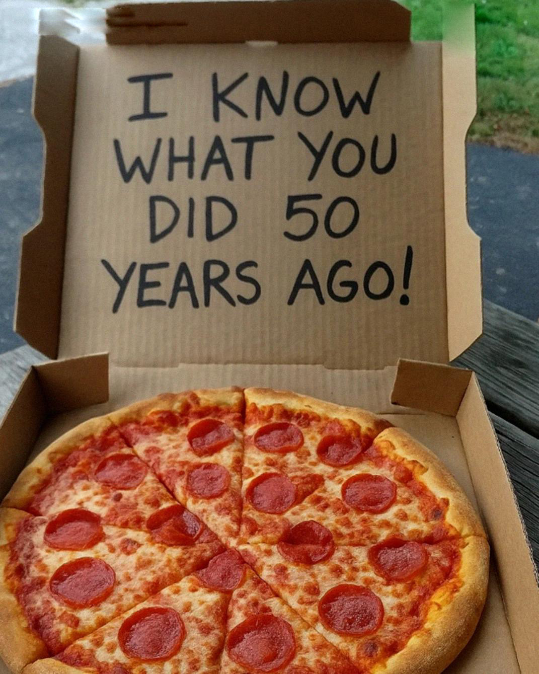 I never knew who kept sending me pizza every Saturday, but it soon became the only bright spot in my lonely weeks. I waited for the doorbell each time, until one night I opened the box and saw the words: “I know what you did 50 years ago.” I realized the past I had buried was no longer safe.