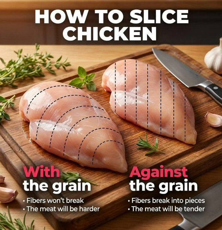 When it comes to chicken (and meat in general), how you cut it can completely change the texture of every bite. The key lies in understanding the “grain” of the meat.